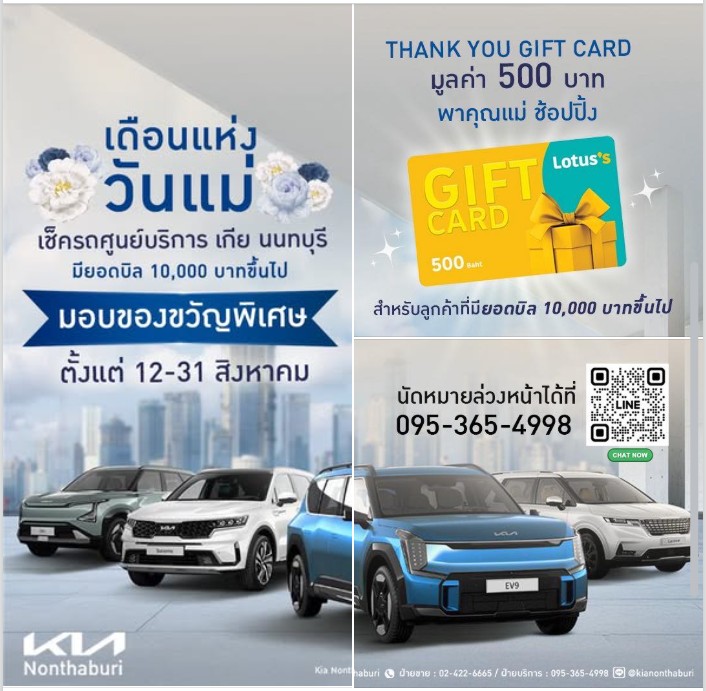 วันแม่ปีนี้ อย่ามัวแต่คิดว่าจะให้อะไรกับคุณแม่ดี! นำรถมาเช็กที่เกีย นนทบุรี รับของขวัญ 2 ต่อไปเล้ยยยยย!